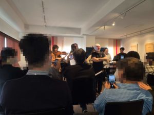 人数は20人前後で、演奏者(NJBPでは「選手」と呼びます)も含めて30人ほどでいっぱいになるような、アットホームなスペースでした。